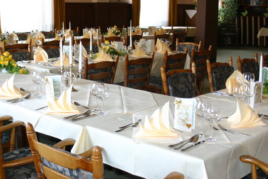 Bei uns können Sie in gemütlichen Räumlichkeiten feiern und dabei klassisch-moderne Küche und Spezialitäten aus der Region genießen.